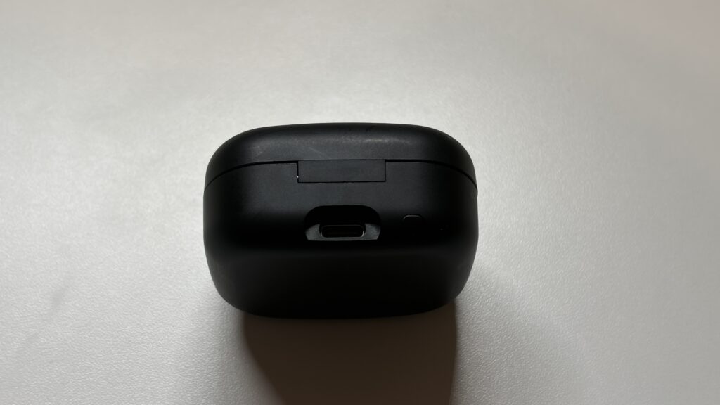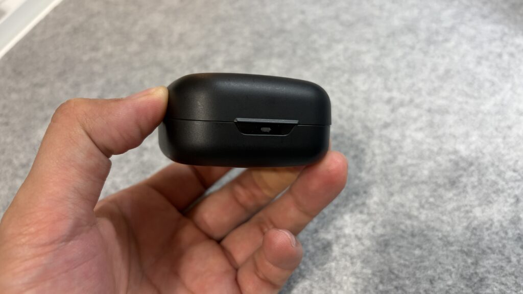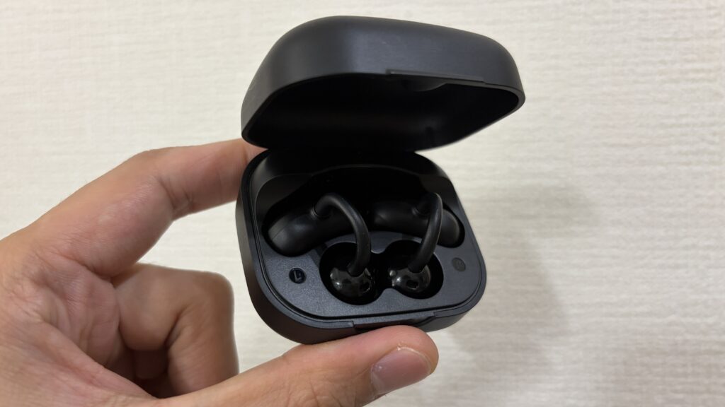 ケースは若干厚みはあるものの全体的なサイズ感は一般的なワイヤレスイヤホンといった感じ。