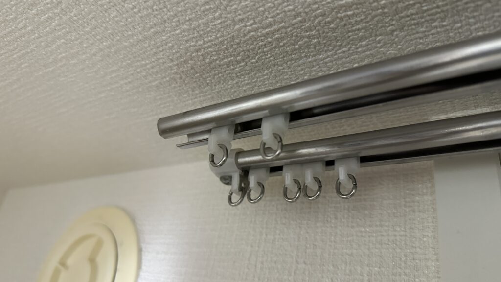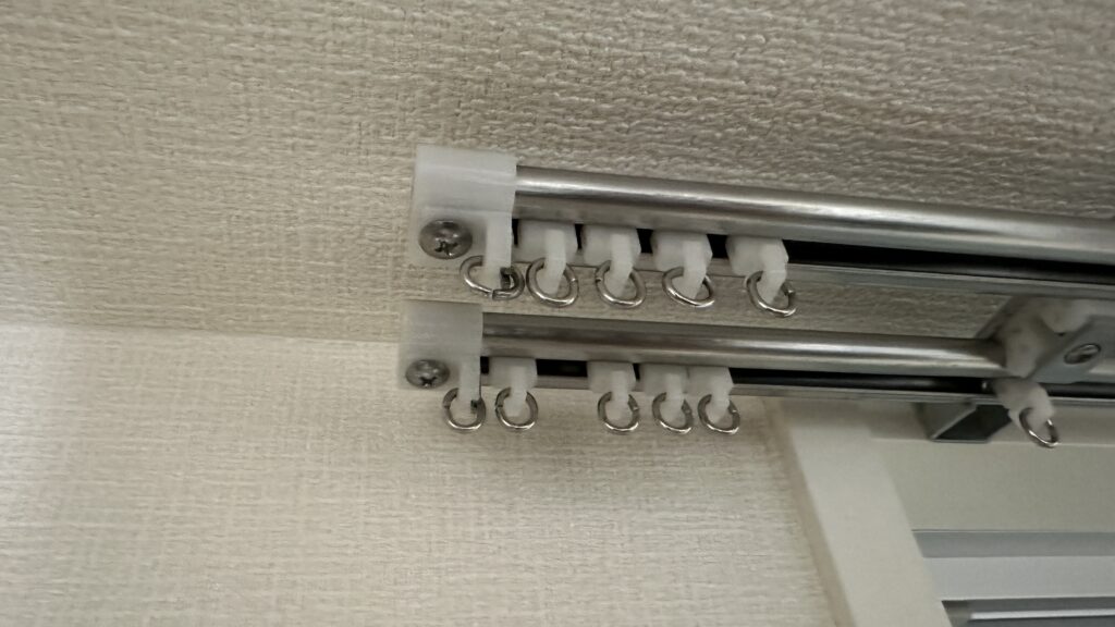 今回はカーテンレールに取り付ける予定だったため、まずはそちらの下準備から。