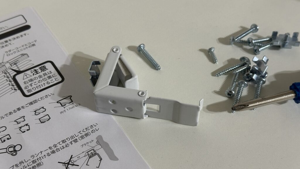 あとはブラインド本体をこのパーツで抱え込むようにして留めるだけ。